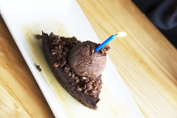 Issa chose the dessert. A Mississippi Mud Pie with cocoa nib crunch and coffee ice cream. Oh Lordie me: how marvelous and crazy-good. I just took one bite (really) as my belly did not need any more feeding. Birthday wishes were abundant. The single blue candle representing sixteen years of life was blown.