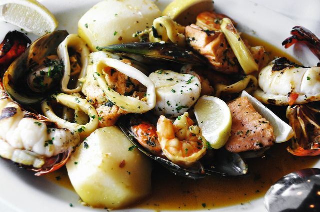 We had the Parrilhada de Mariscos for our main dish and we were like, wow! This was a seafood party on a plate that consisted of Jumbo Scallops, Florida Shrimp, Mussels, Salmon, Lobster Tail, Squid and steamed Potatoes grilled and sautéed in a White Wine and Garlic Sauce. The seafood was delicious and fresh and the dark-brown sauce just divine. Of course the favorite was the lobster, grill-marks adding a charred flavor that contrasted very well with the soft and delicate inside of the lobster. The scallops were not far behind, sweet and juicy and oh so tender. Honestly, I am tired of fighting with Issa for the best bits of food, she is always trying to hog the lobster and scallops, but who can blame her? Sharing is ideal for this dish, the two potatoes accomplishing the mission of making us feel full and extremely satisfied.