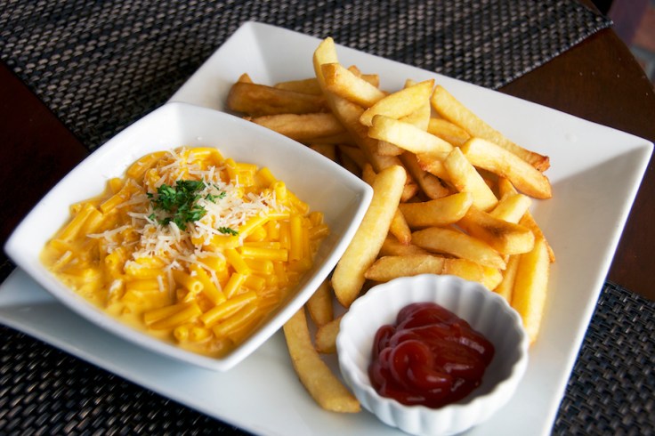 I am not writing much today, just simply showing you photos of a good, comforting lunch. Fish & Chips, Macaroni & Cheese and Cau Cau de Mariscos.