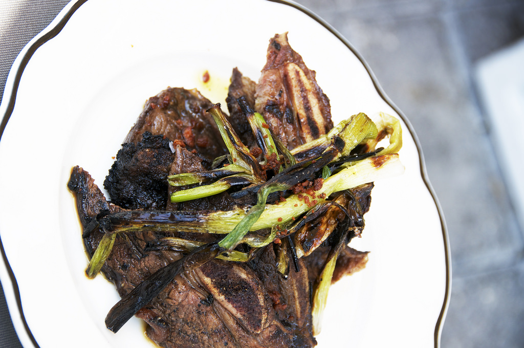 Tiras de Asado – grilled short ribs, romesco, charred scallion, fried garlic was a darling of a dish, really enchanting and full of umami.