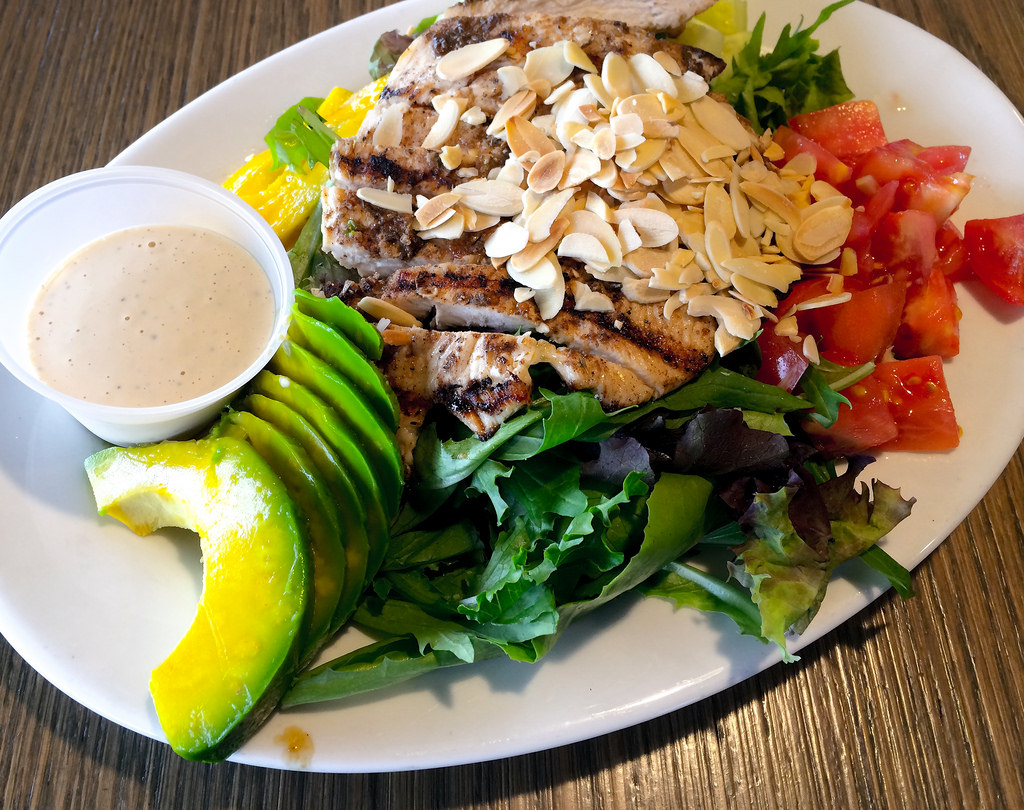 I ordered the Jerked Chicken Breast Salad whick consisted of Jamaican jerked grilled chicken breast, fresh mango, avocado, tomatoes, toasted almonds, and sherry vinaigrette. This was perhaps the best salad I ever had in my life! The chicken itself was on the hot side so pairing a slice of the chicken with avocado and mango was perfect. I initially thought that the addition of almonds would not be to my liking but they were fantastic, adding a special crunch and flavor to the whole ensemble of ingredients.