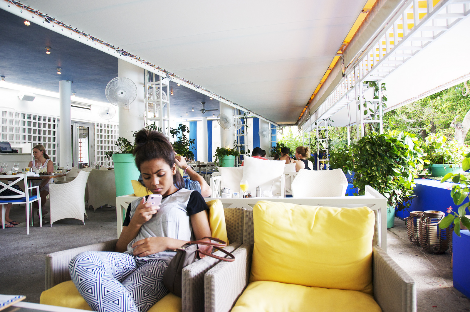 It was a hot day and not too breezy. Sitting outside was the only option for us though as the terrace was so inviting and colorful, the ceiling fans making the heat disappear.