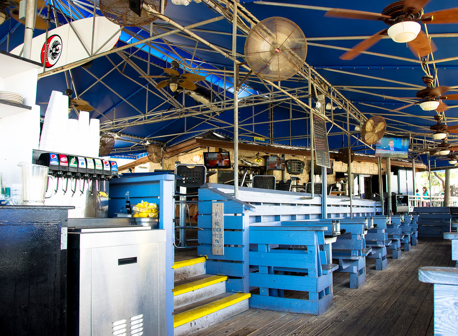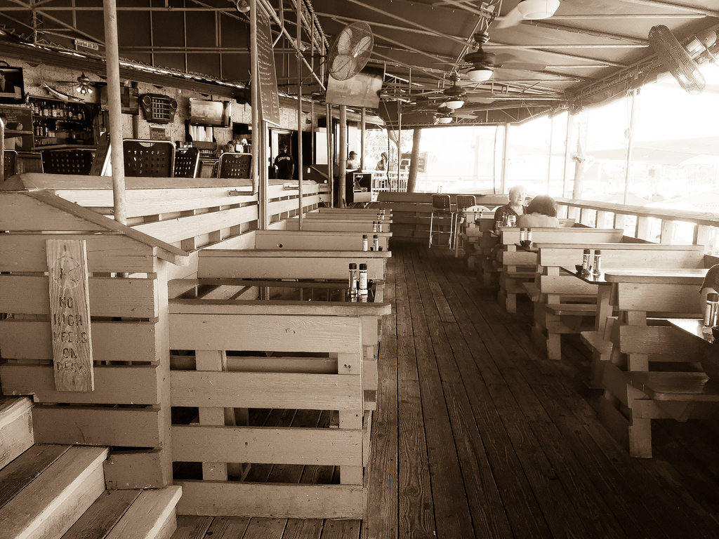 I hear that sometimes dolphins, manatees and barracudas swim in the bay and entertain the diners.