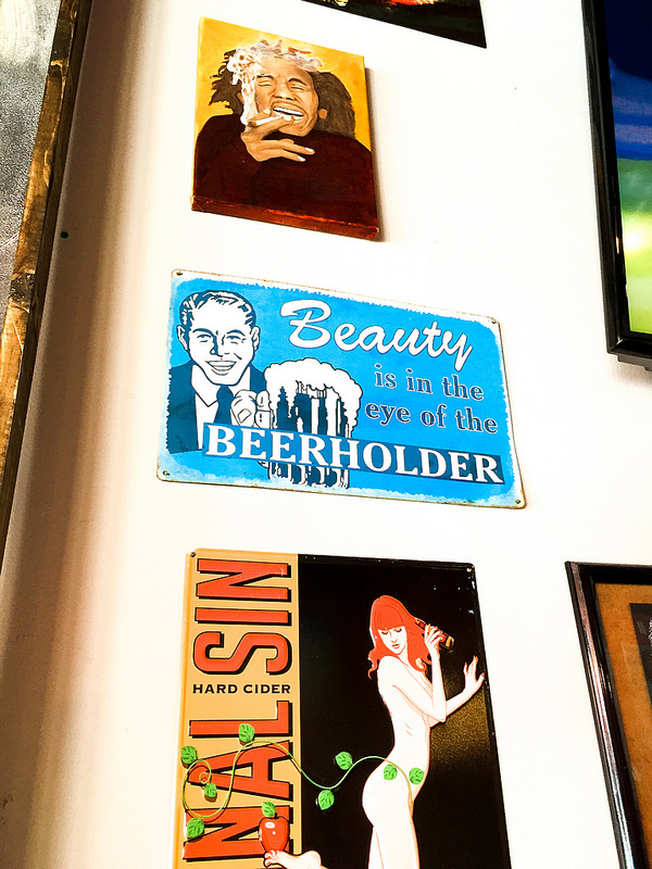 The decoration is cozy, with lots of art and odd bits of nostalgia.