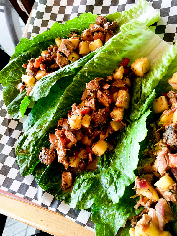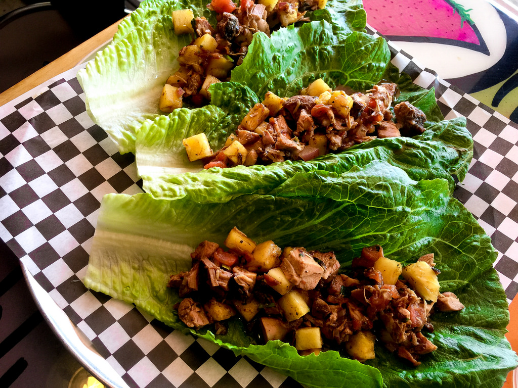 The Pineapple X-Press is a lettuce wrap. Spicy and delicious and made with pork and little chunks of pineapple.