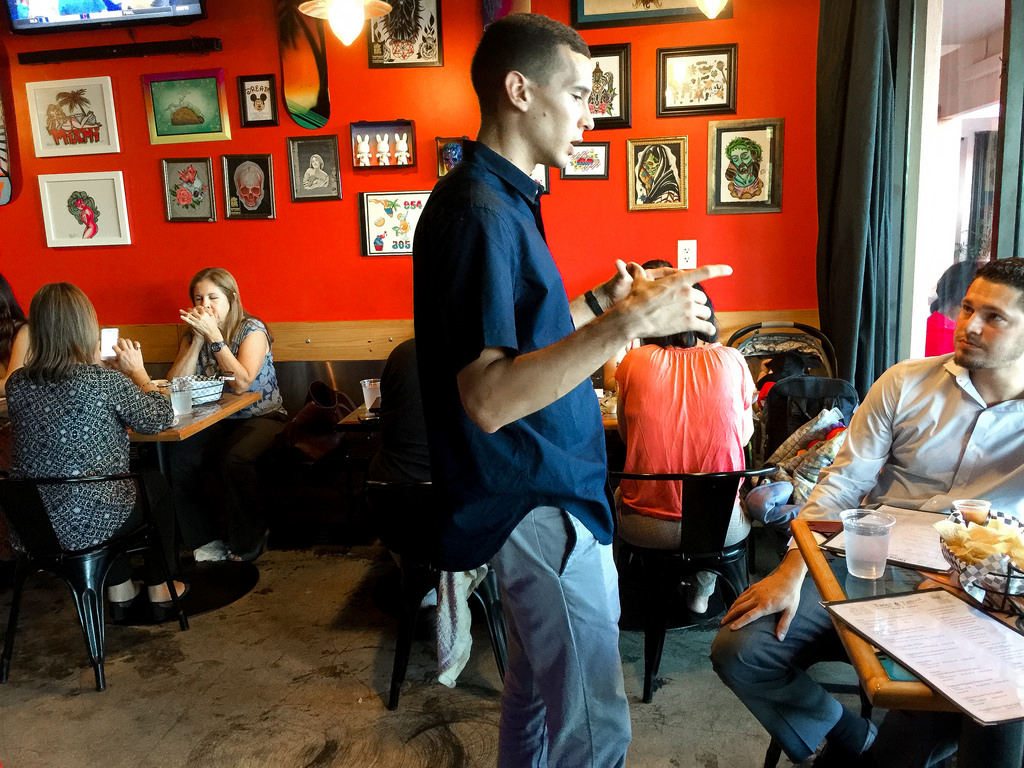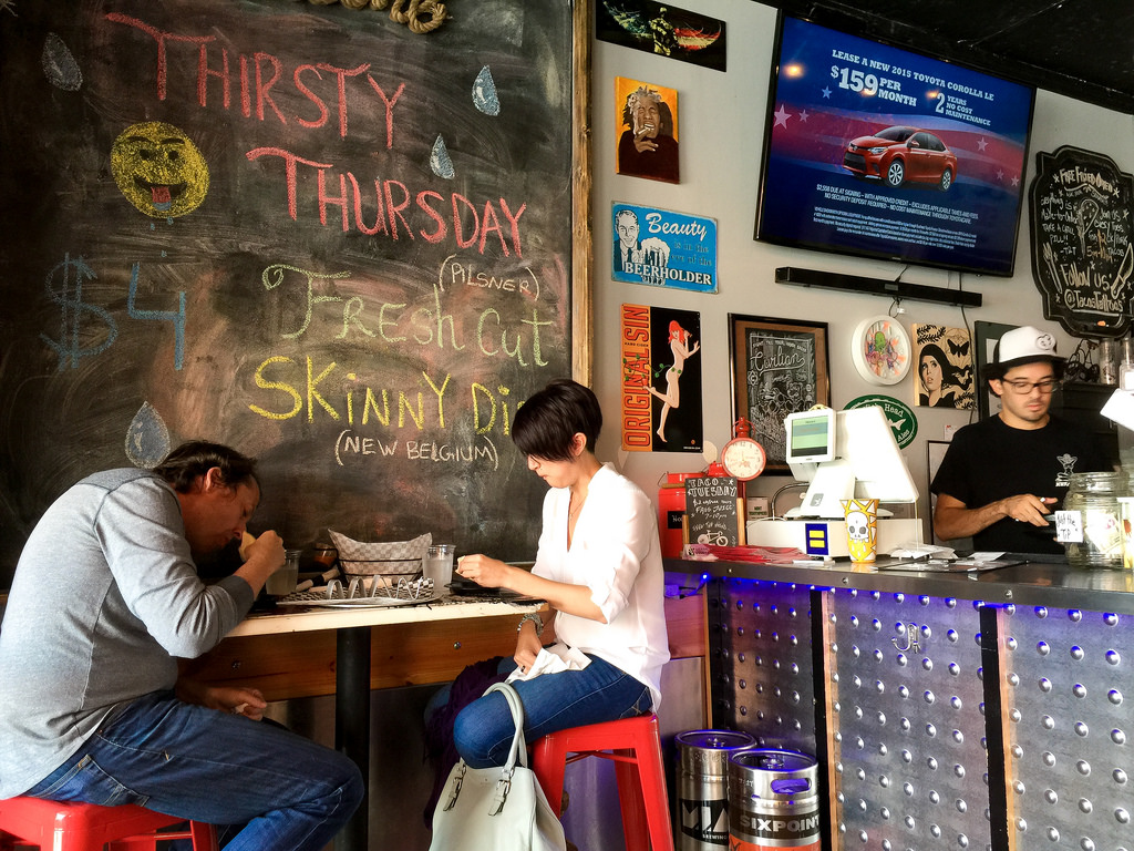 Tacos & Tattoos is very small (I counted 7 tables). The service is super-friendly. You’ll see families; young and old couples alike enjoying a great time and good food. They also serve craft beers in their inviting and tiny ultra-modern bar.