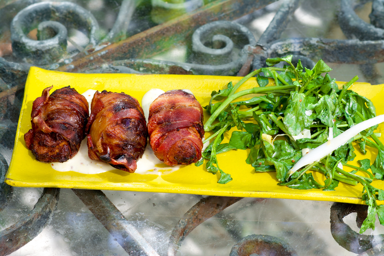 Bacon Wrapped Dates stuffed with Linguiça and Manchego from Sugarcane raw bar grill.