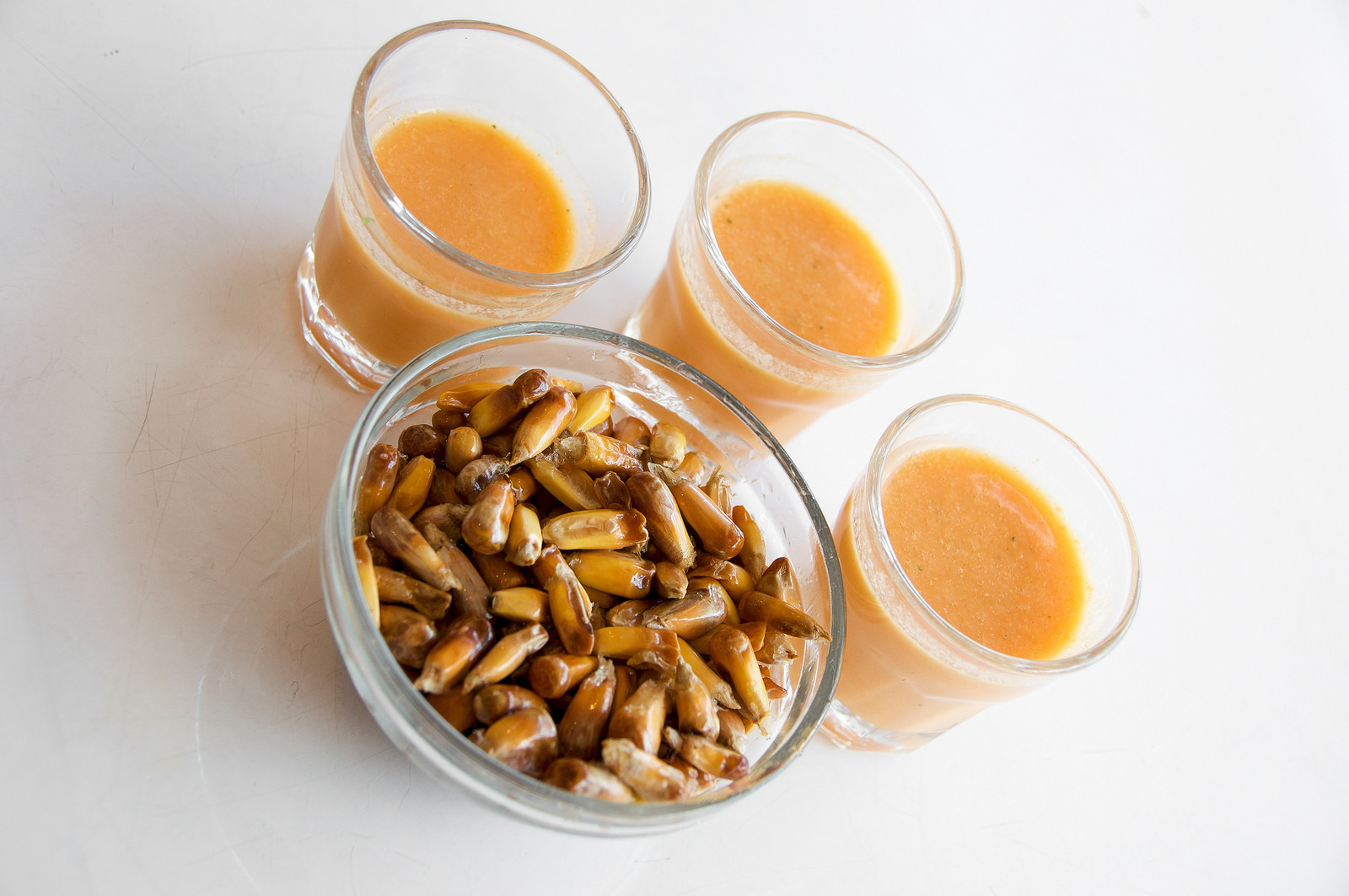 You are welcomed with a serving of Cancha and a shot of Leche de Tigre