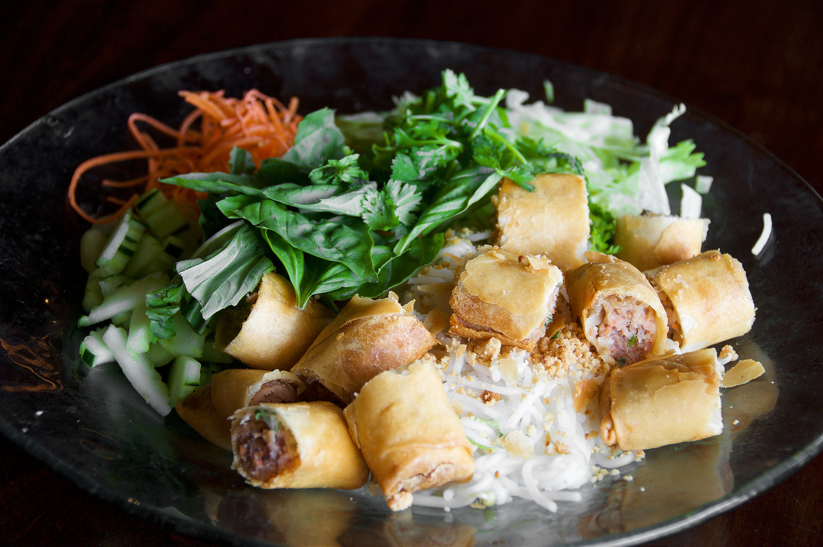 Ban Cha Gio was something I wanted to try for a long time. It’s a noodle dish with Vietnamese spring rolls, herbs, bean sprouts served with nuoc cham sauce. I was expecting hot noodles; instead, the noodles were at room temperature while the spring rolls were piping hot. What a refreshing and unusual combination of ingredients and textures.