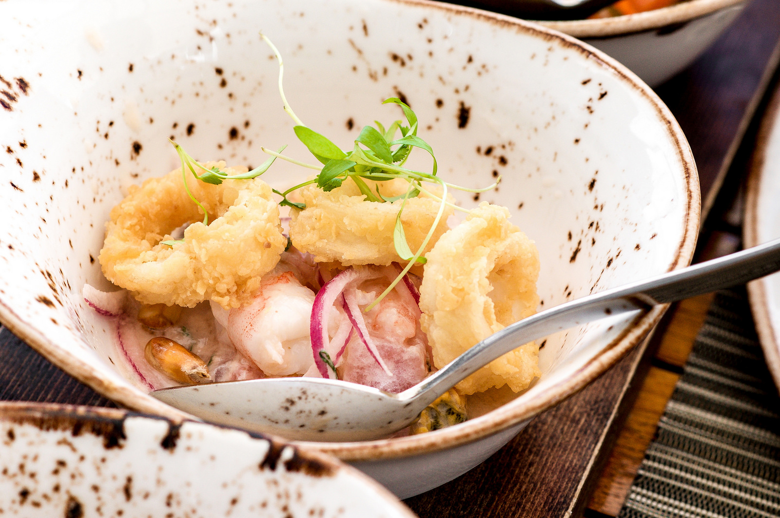 - The Barrio – catch of the day, shrimp, octopus, crispy calamari, rocoto pepper leche de tigre