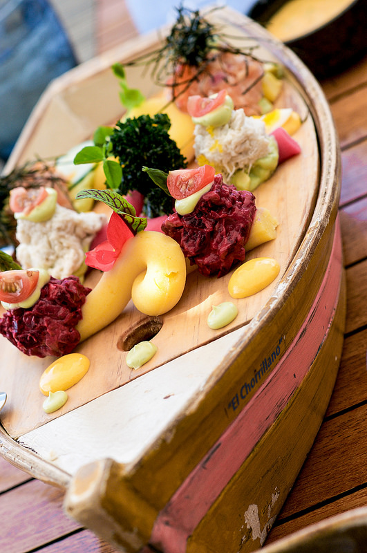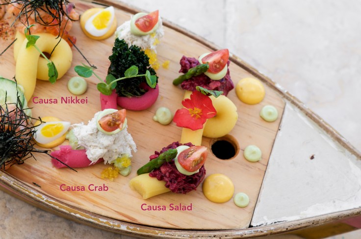 We had the Causa Tasting called La Chalanita – causa tasting of two nikkei, two crab, and two salad causas served in a hand-carved traditional fisherman’s boat
