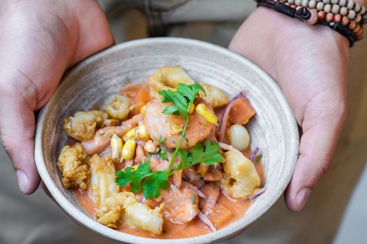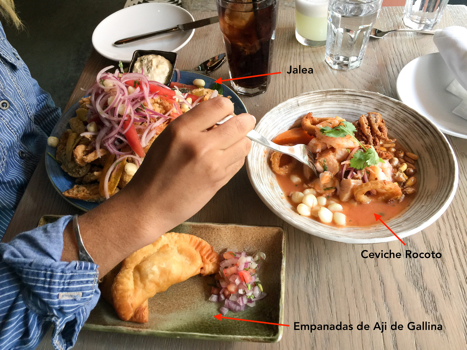The Jalea was spectacular – fried calamari, shrimp, mahi, mussels, clams, salsa criolla, which was prepared with red onions, aji amarillo, lime juice, and some freshly chopped cilantro.