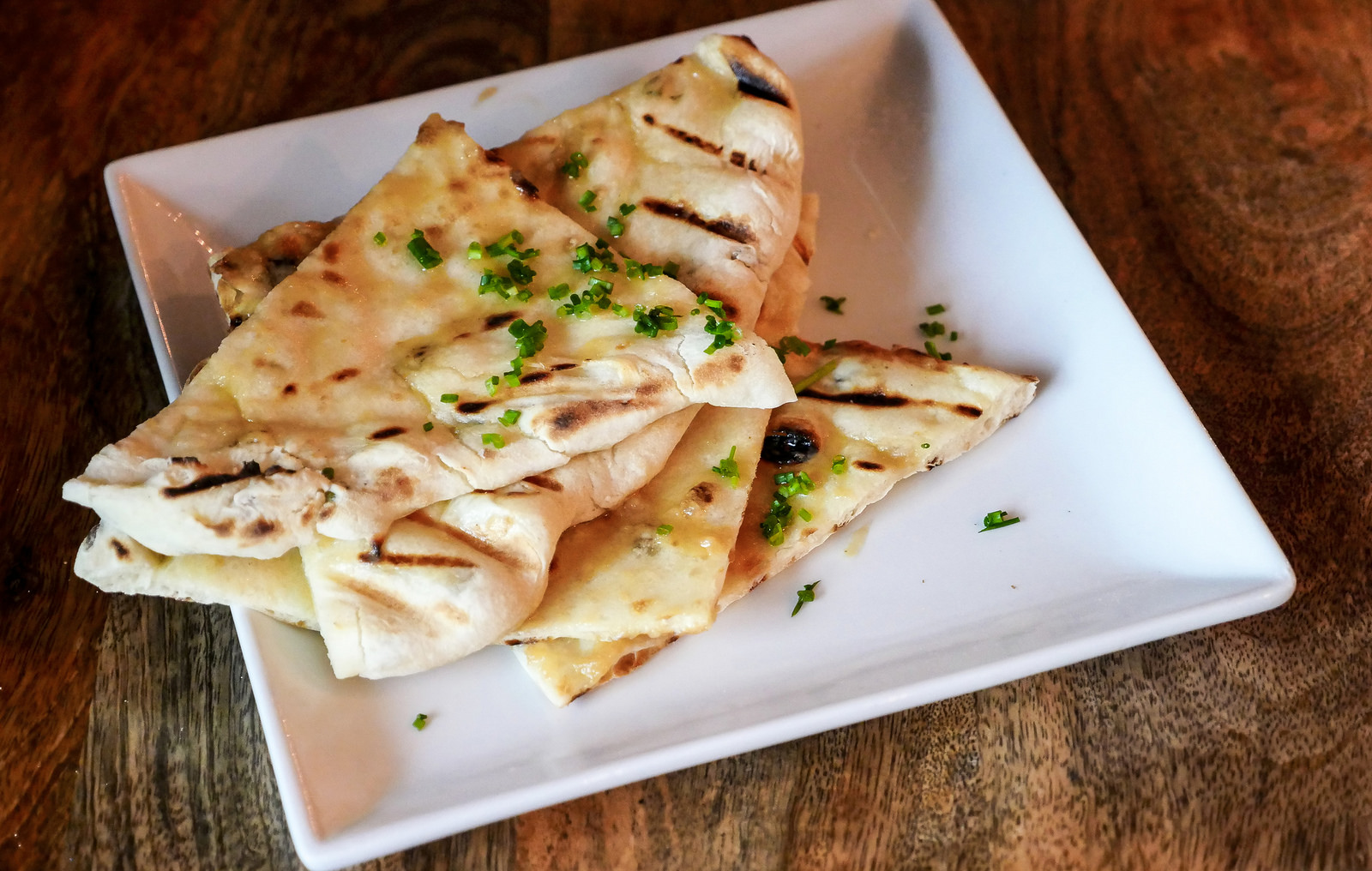 We started our culinary adventure with Garlic Naan. It was delicious with a pronounced taste of garlic and a little sprinkling of chives.