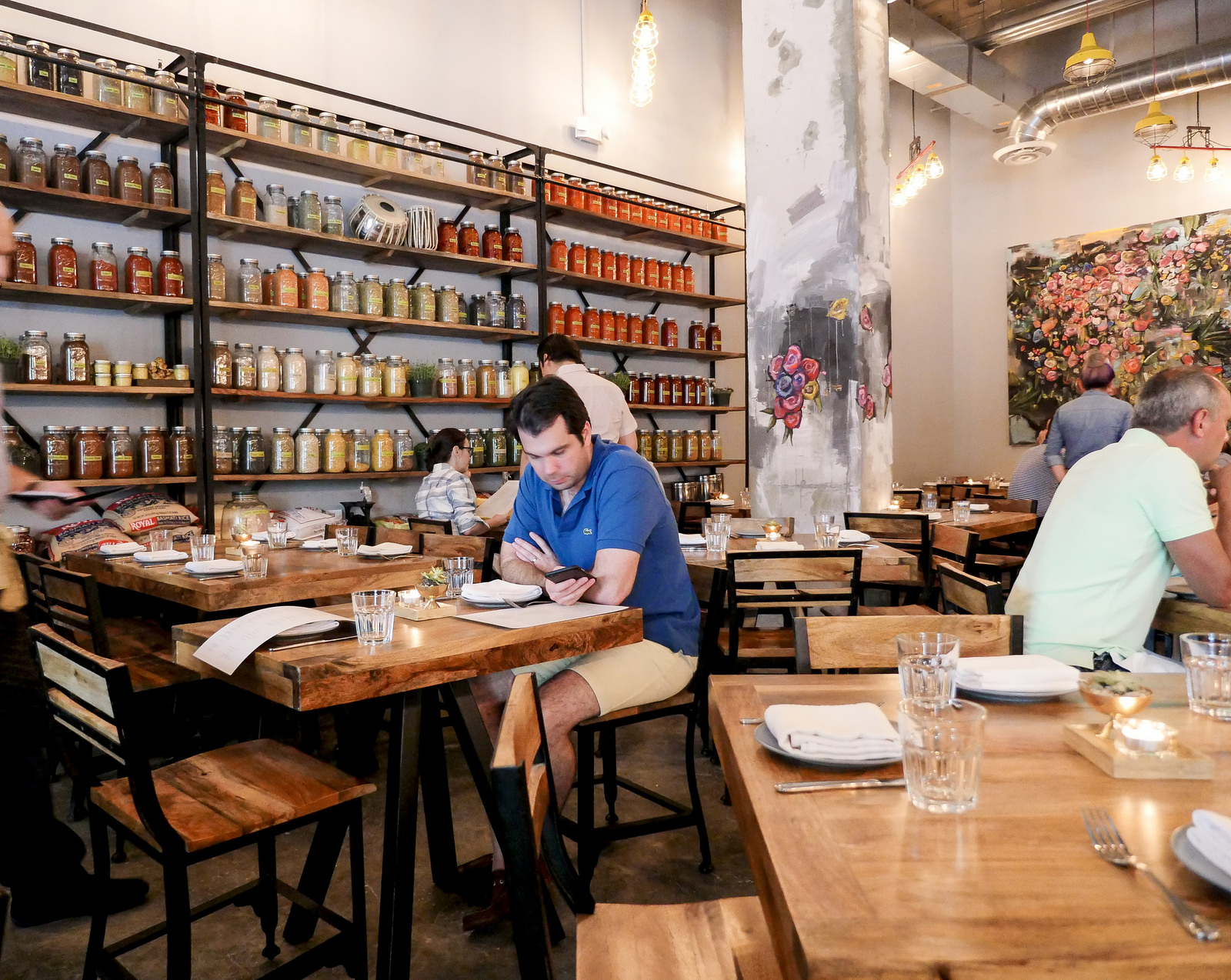 The restaurant is beautiful and very modern, a sprinkling of Indian artifacts reminds you of the type of food they serve. One wall was lined with a shelve replete with bottles containing anything from ghee to tomato sauce to lentils, a splendid idea that I wish I could use at home. The venue is also the perfect size, not massive, but not too tiny either. There is also outdoor seating, but the day was too muggy to sit outside.