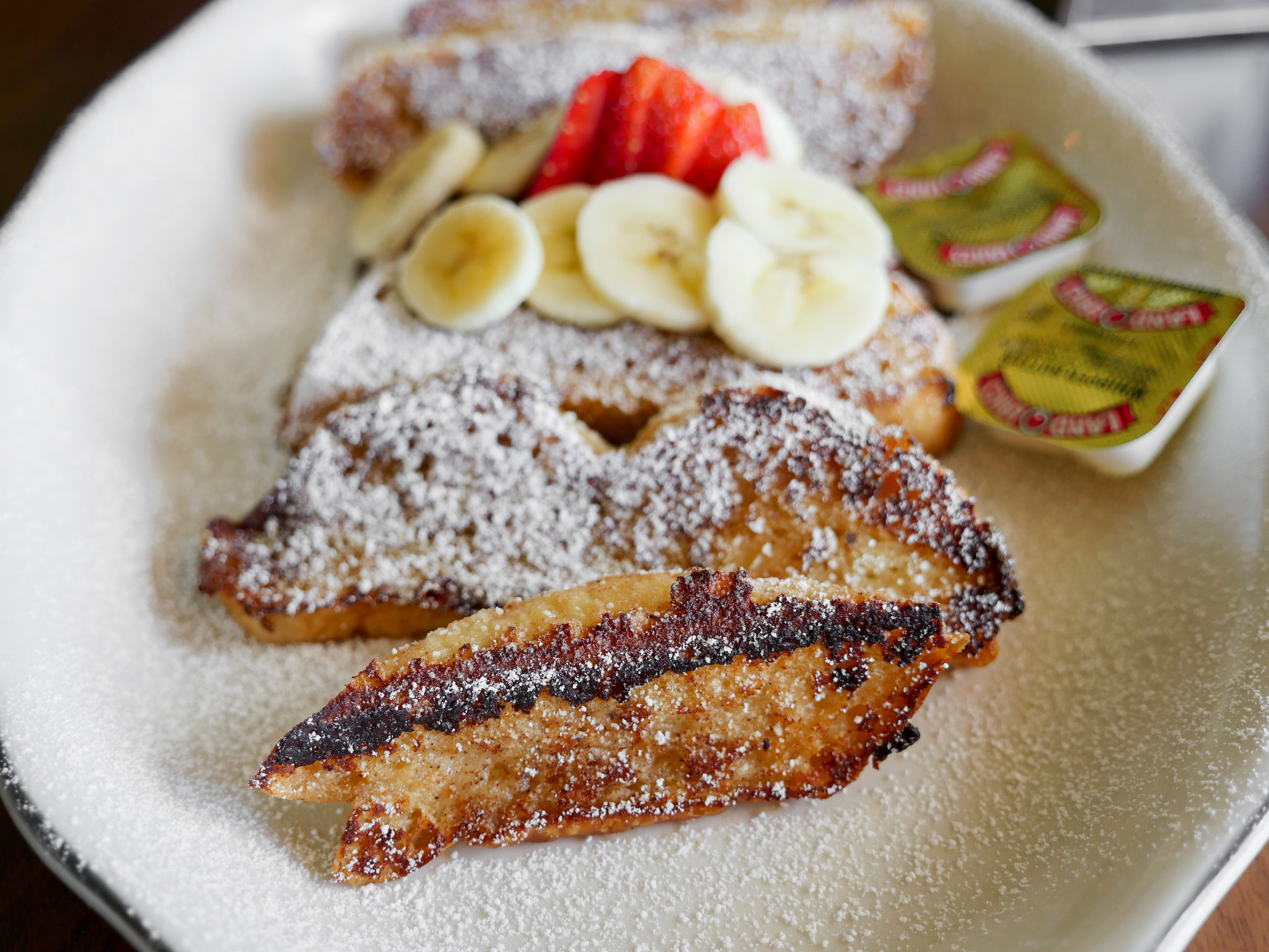Little Chicken had the French Toast “Pain Perdu” with strawberries and bananas. I barely got to taste this as she latched on to this dish with a passion. I got a tiny bite, and it was fluffy and delicious.