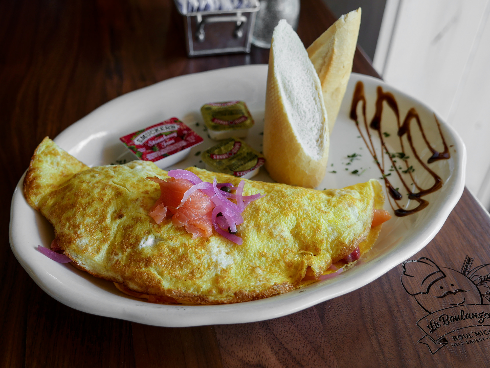 La Boulangerie Boul’Mich also offers a variety of pastries and desserts that are prominently on display in order to tempt you. Boul’Mich, by the way, is a nickname given to Boulevard St. Michel in Paris, and even though I did not get a French vibe here, it definitely had an aura of simple elegance, an energetic atmosphere, and contemporary décor. The service was also outstanding – our waitress always approached the table with a massive smile.