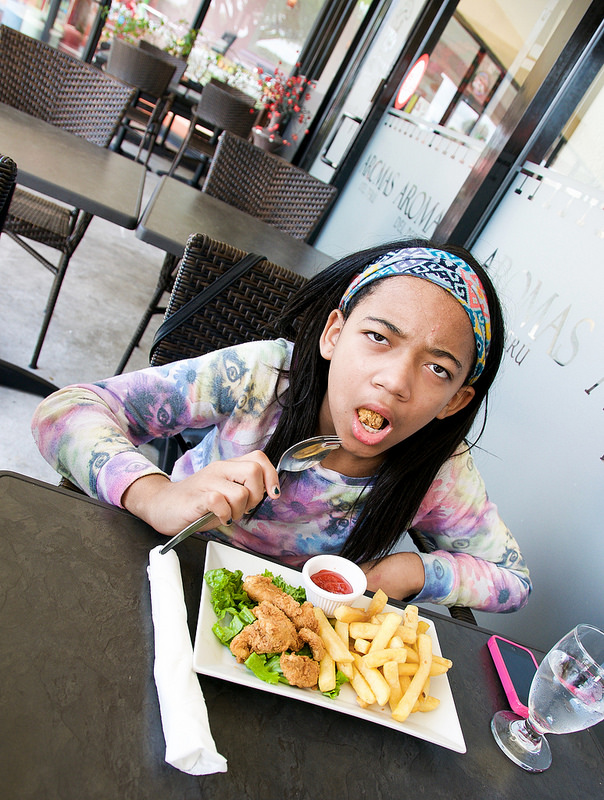 We were hungry, and I did not want to drive too far, so we ended up at the same Peruvian restaurant across the street, Aromas de Perú. This was not a leisurely lunch – we wanted to eat as much as possible in a short amount of time as the little one had a hair appointment.