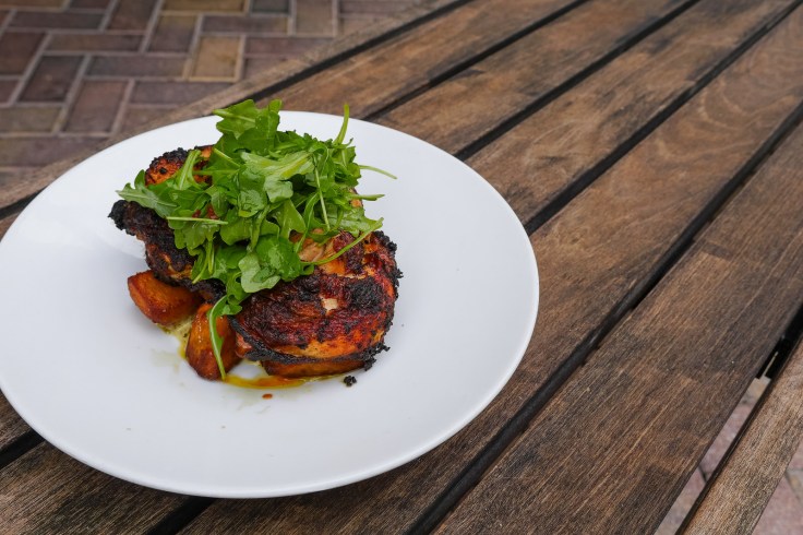 The Roasted ½ Chicken was the main dish. It was served with roasted yams, chimichurri gravy, and arugula salad. It was delicious, just wish the serving was a little bigger as it was a “large” plate. I was hungry for more.