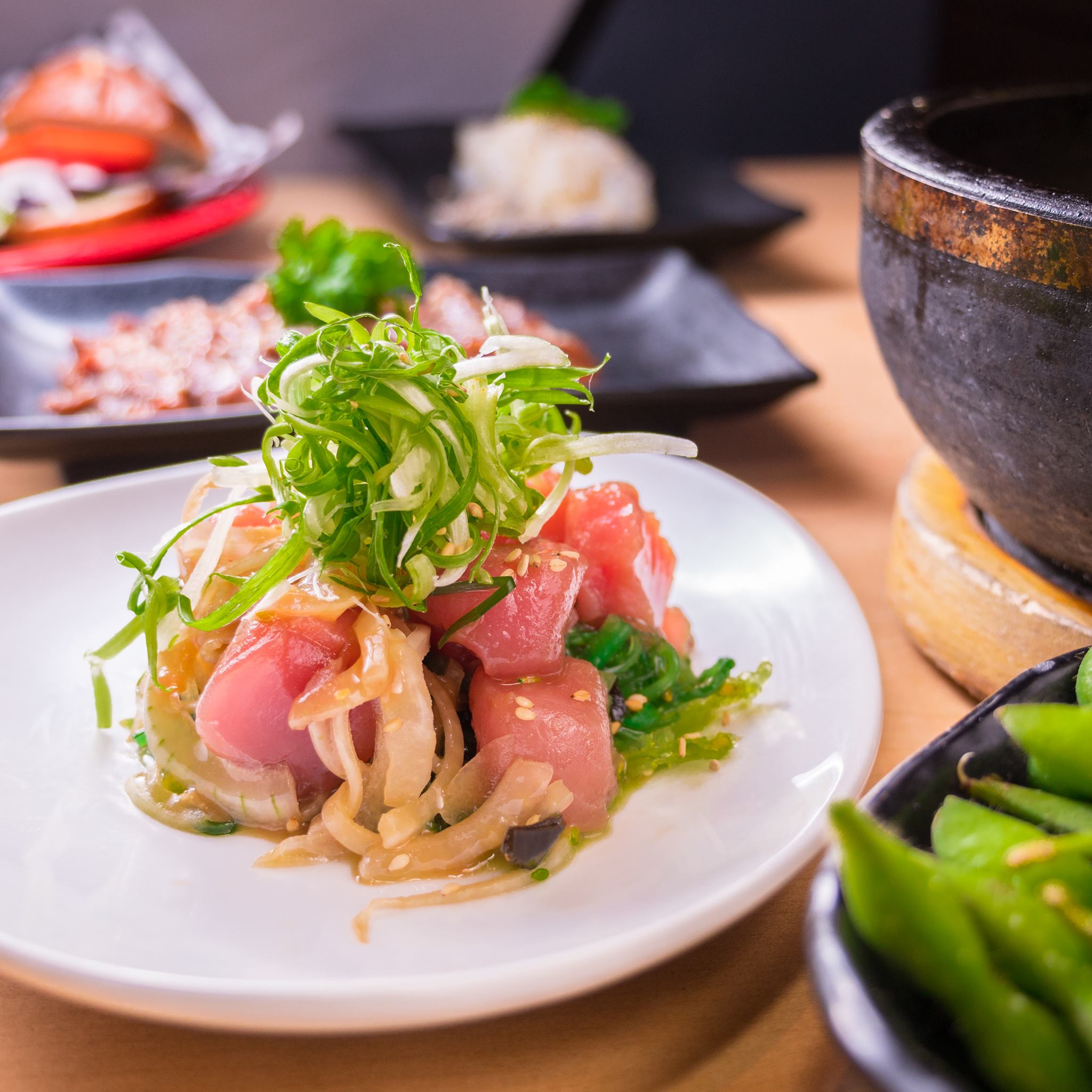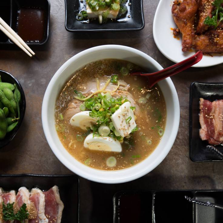“Gyu-Kaku, meaning “Horn of the Bull” in Japanese, provides the authentic Japanese yakiniku (grilled barbecue) dining experience where customers share premium cooked meats over a flaming charcoal grill while sipping on Japanese sake, shochu, and frosty cold beers. Gyu-Kaku offers a wide range of meats including the best-seller Harami Skirt Steak in Miso Marinade and Certified Angus Kalbi Short Rib in Tare Sweet Soy Marinade.”
