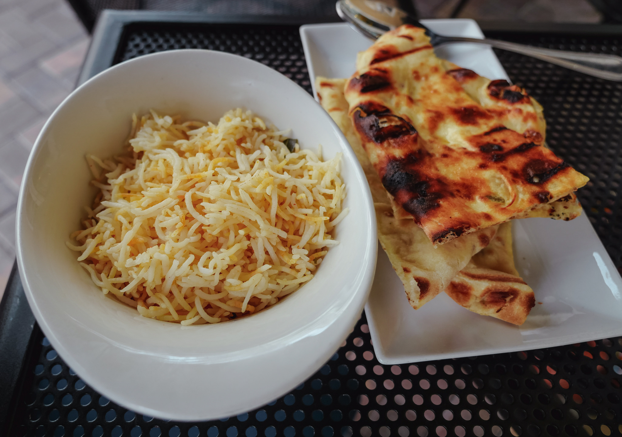 The first time we went to Ghee Indian Kitchen we sat inside. I wanted to sit outside to take some pictures, so we went back in spite of the heat. I also wanted to try one of their tiffin Lunches as I have a long-standing fascination with the tiffin itself.