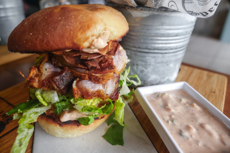 Juicy and crunchy pork belly cooked in Caja China with fried sweet potatoes chips and cevichada mayo served on a homemade bun. This was a beautiful tower of ingredients that complemented each other flawlessly – a hearty sandwich filled with a lavish load of tender slices of pork belly, and a crazy amount of flavor and textures.