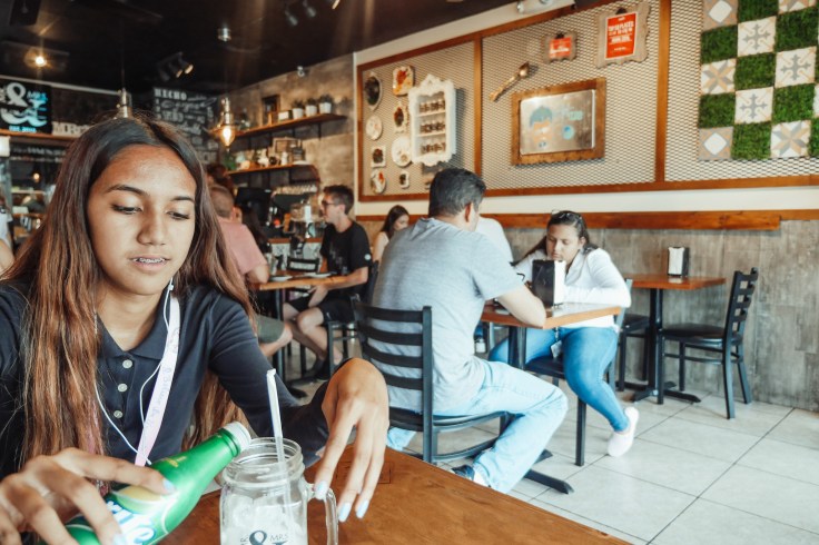 Never seen this type of presentation before. Mrs. Bun brought all these little jars to the table for us to chose. We had the Nutella Cheesecake and the Cookie Dough Cheesecake. I believe that in Perú they are called “copitas,” not sure. They looked so cute, but I did not try them as I could smell the sugar from where I was sitting. They were indeed very sweet, according to the little chicken and Miss T.