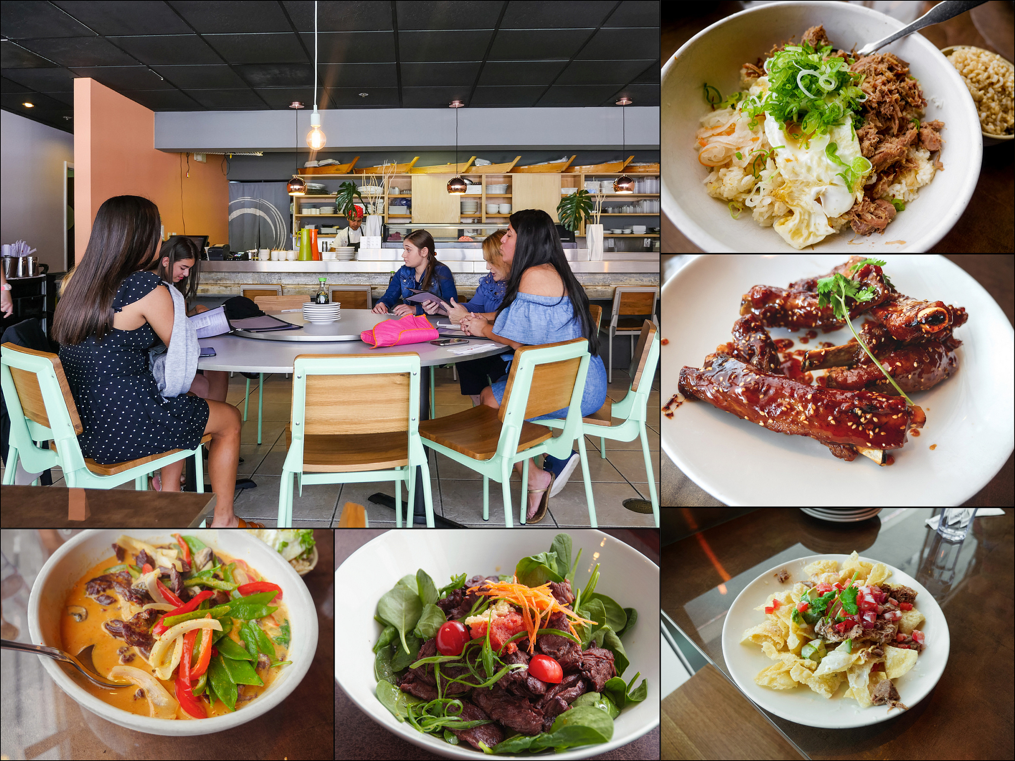 Filipino Rice Bowl, Glazed Spare Ribs, Asian nachos, Garlic Beef Tataki, Red Beef Curry.