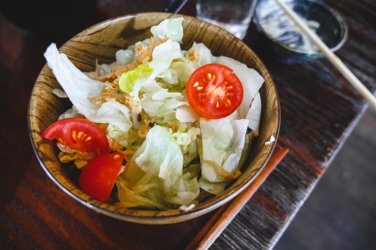I have to mention the Mini Wedge Creamy Soy Salad served as a side. It was deceptively good – an ordinary salad of lettuce, tomatoes, and crunchy bits made spectacular by a creamy mystery dressing.
