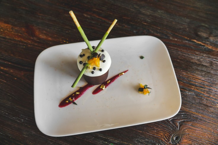We had the Tangerine Cake for dessert. The chef was so kind that she added some gold leaf to make it look prettier for the camera. This was an unforgettable and sweet work of art, swiftly eaten by Mister B. and the little chicken.