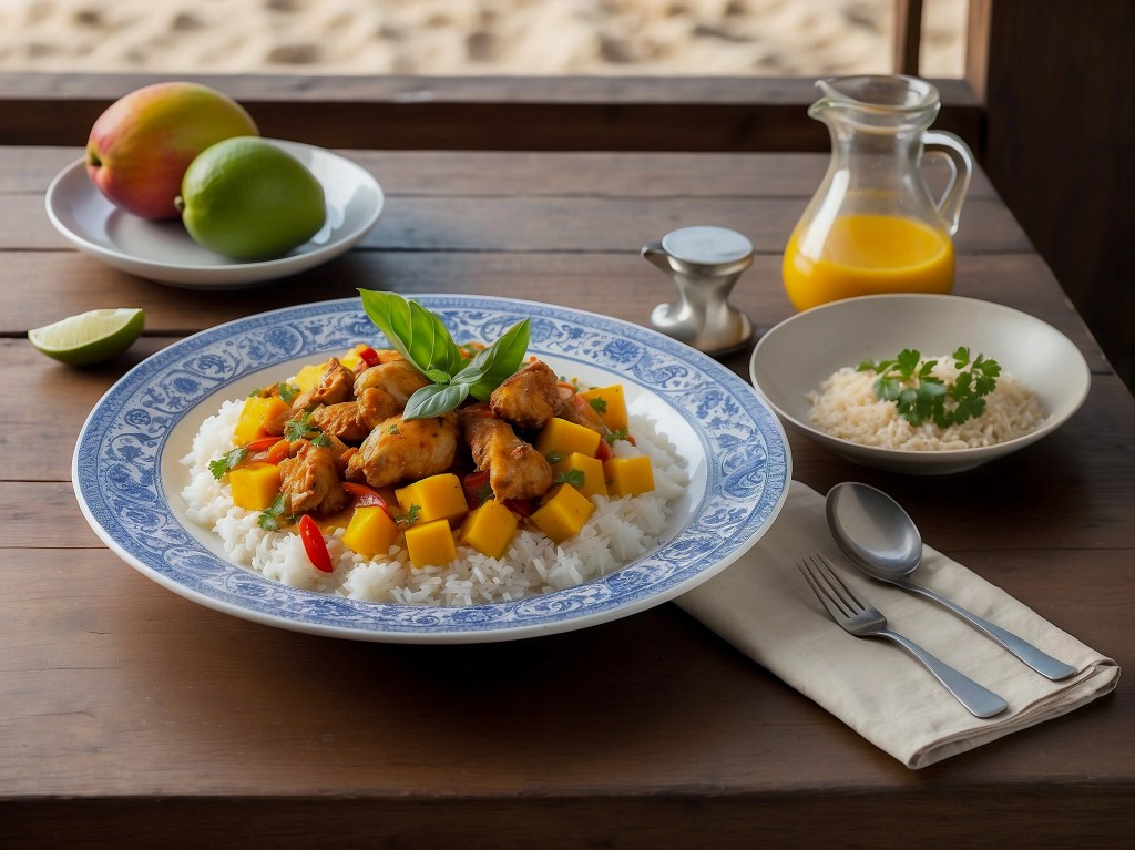 - Combine Chicken, Mango, and Coconut Milk: Return the chicken to the pan with the mango puree and coconut milk. Simmer for 10-15 minutes until the sauce thickens.