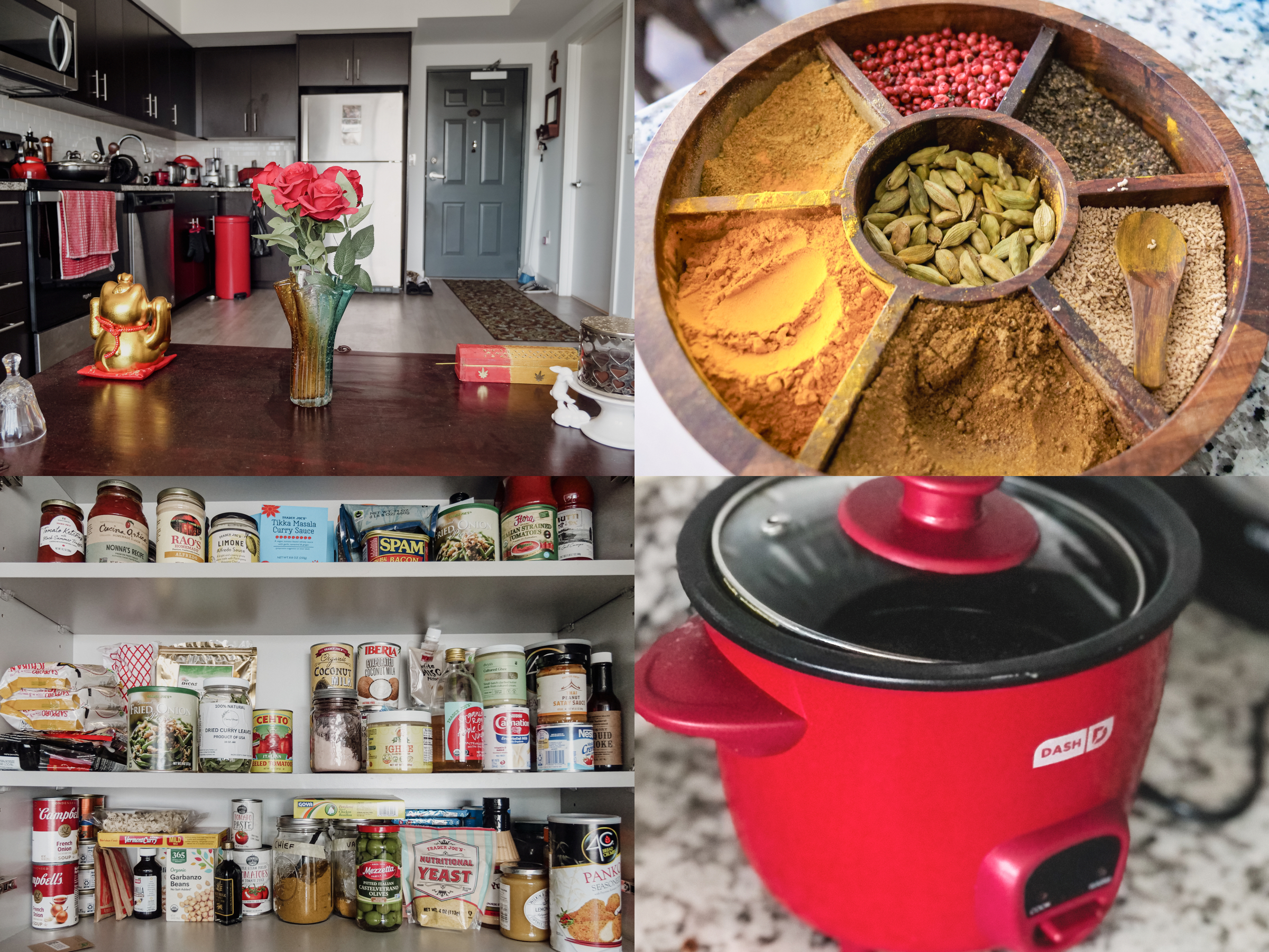 In the pantry, promises of flavorful meals awaited their fate, each ingredient a character in a dish yet to be savored, a story yet to unfold. My masala dabba filled with colorful spices and exotic fragrances. Will they find their purpose in another kitchen, another one like #303?
